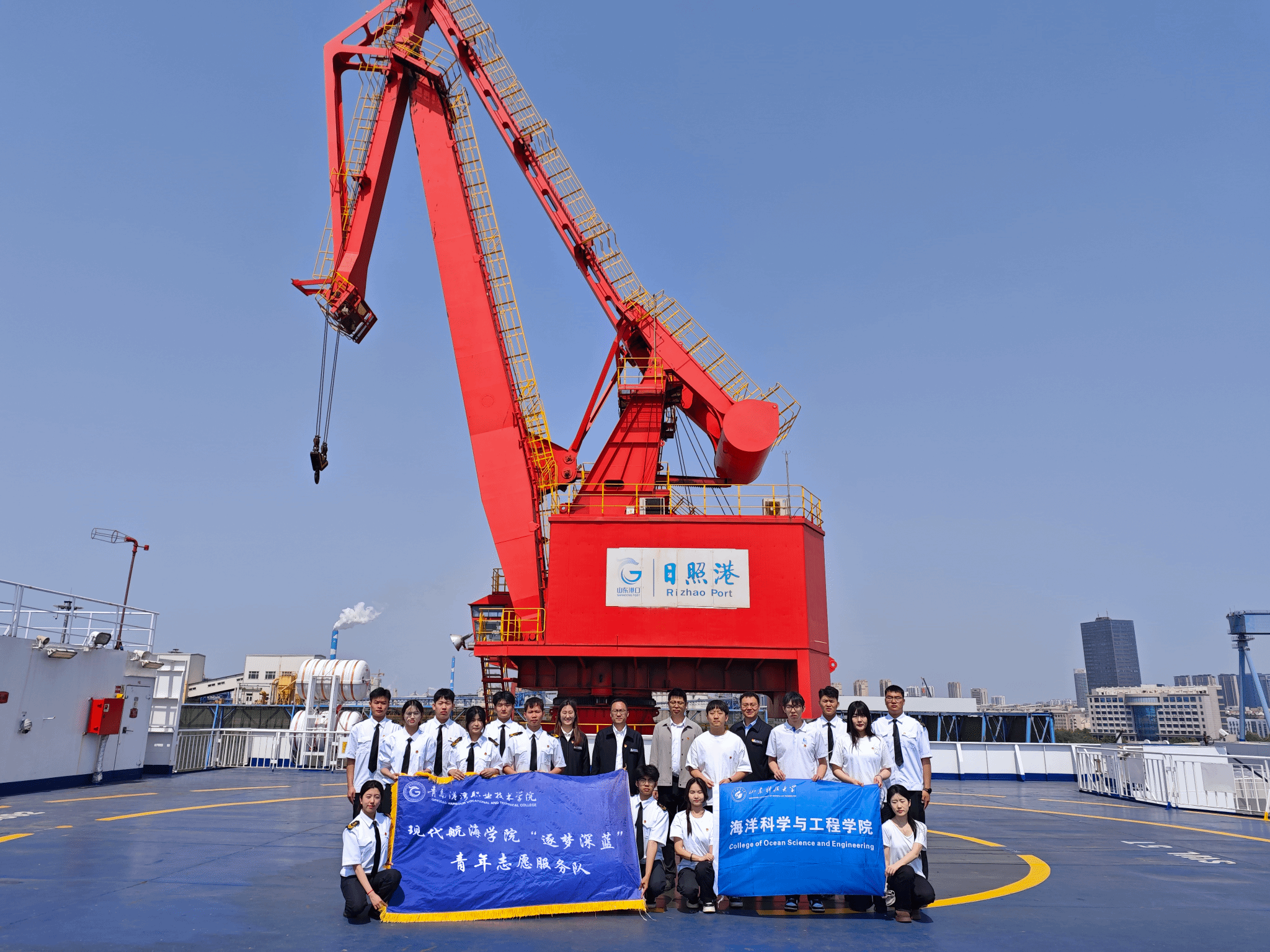 5月18日,bw必威西汉姆联与山东科技大学海洋科学与工程学院联合赴日照“东方轮”号开展志愿活动。党总支副书记纪栋尚、团总支书记陈国栋、辅导员薛宇航及学生志愿者参加。