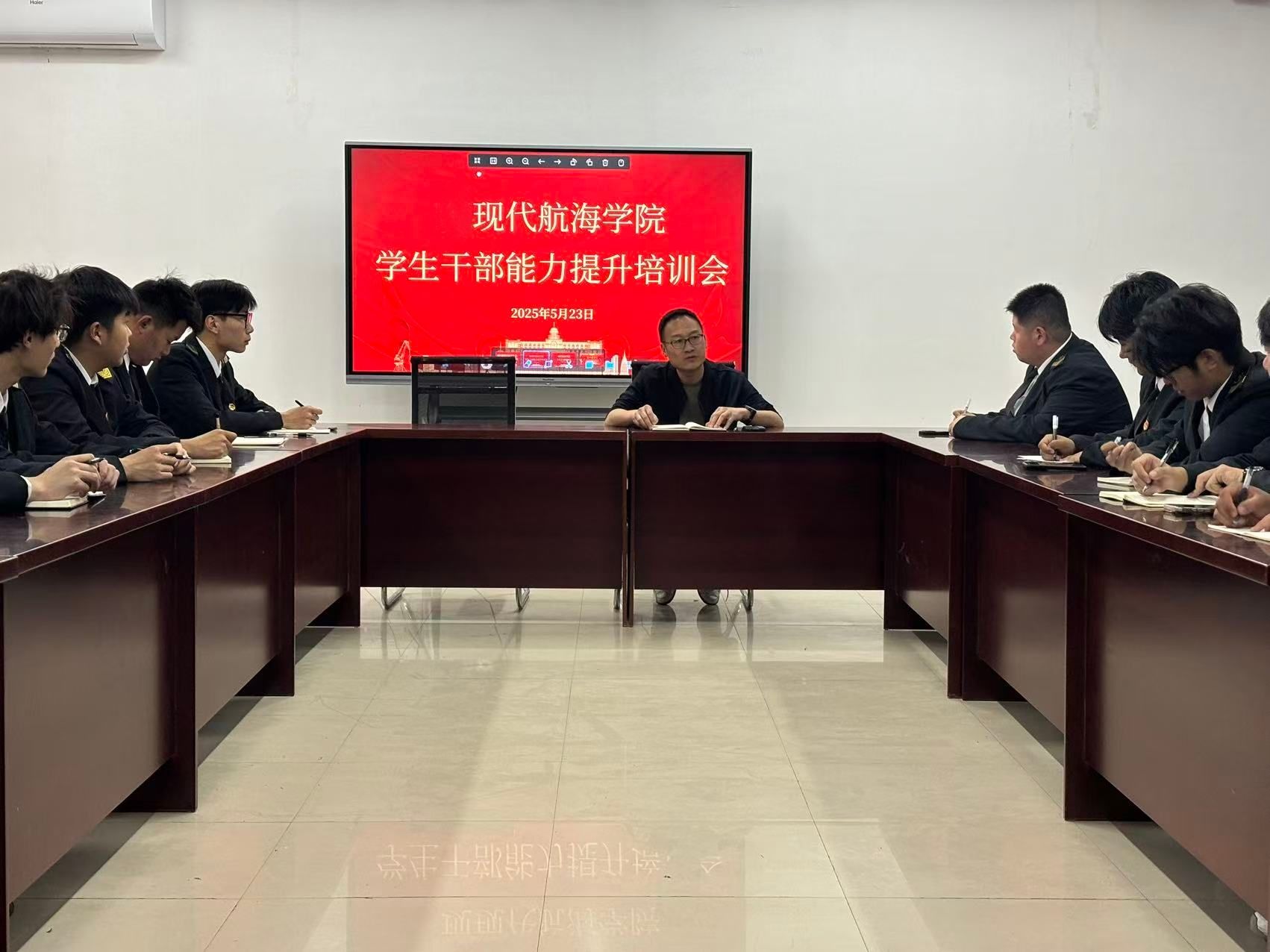 5月23日,bw必威西汉姆联召开学生干部能力提升培训会,党总支副书记纪栋尚主持,2023级和2024级学生干部参加。