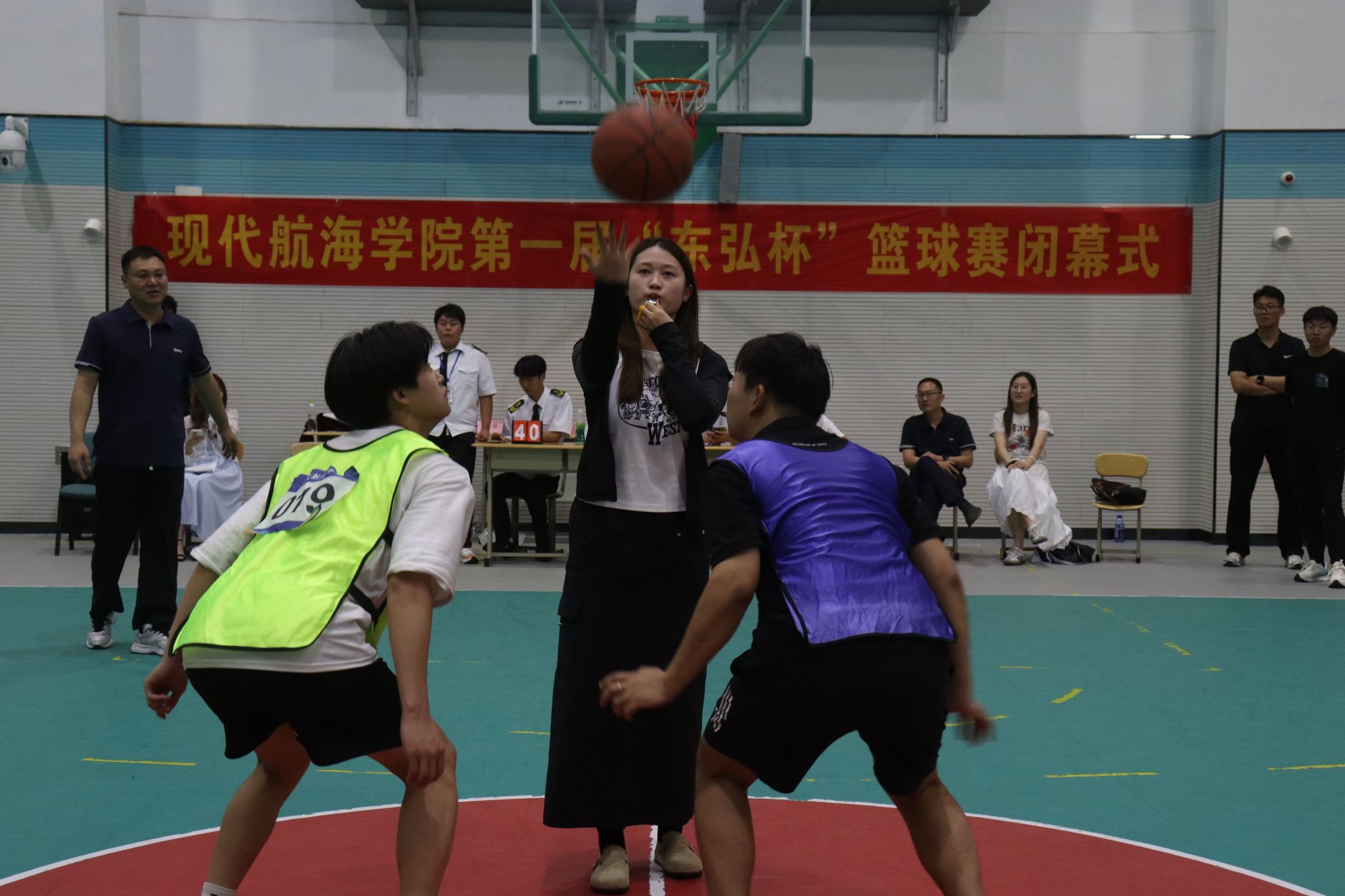 本次比赛以“蓝下争锋,逐梦深蓝”为主题。决赛中,球员们挥洒汗水、奋勇拼搏,每一次精准的投篮、默契的配合都赢得现场观众的阵阵喝彩,接着进行了颁奖仪式。杨婷在致辞中表示,本次篮球赛同学们展现出的拼搏精神和团队意识令人振奋,企业历来重视与学院的合作,支持航海学子全面发展。最后,纪栋尚在总结讲话中对华光海运和山东东弘的大力支持表示衷心感谢,他指出,本次比赛不仅丰富了校园文化生活,更展现了航海学子团结协作、永不言弃的精神风貌,希望同学们把赛场上的拼搏精神延续到学习和生活中去。