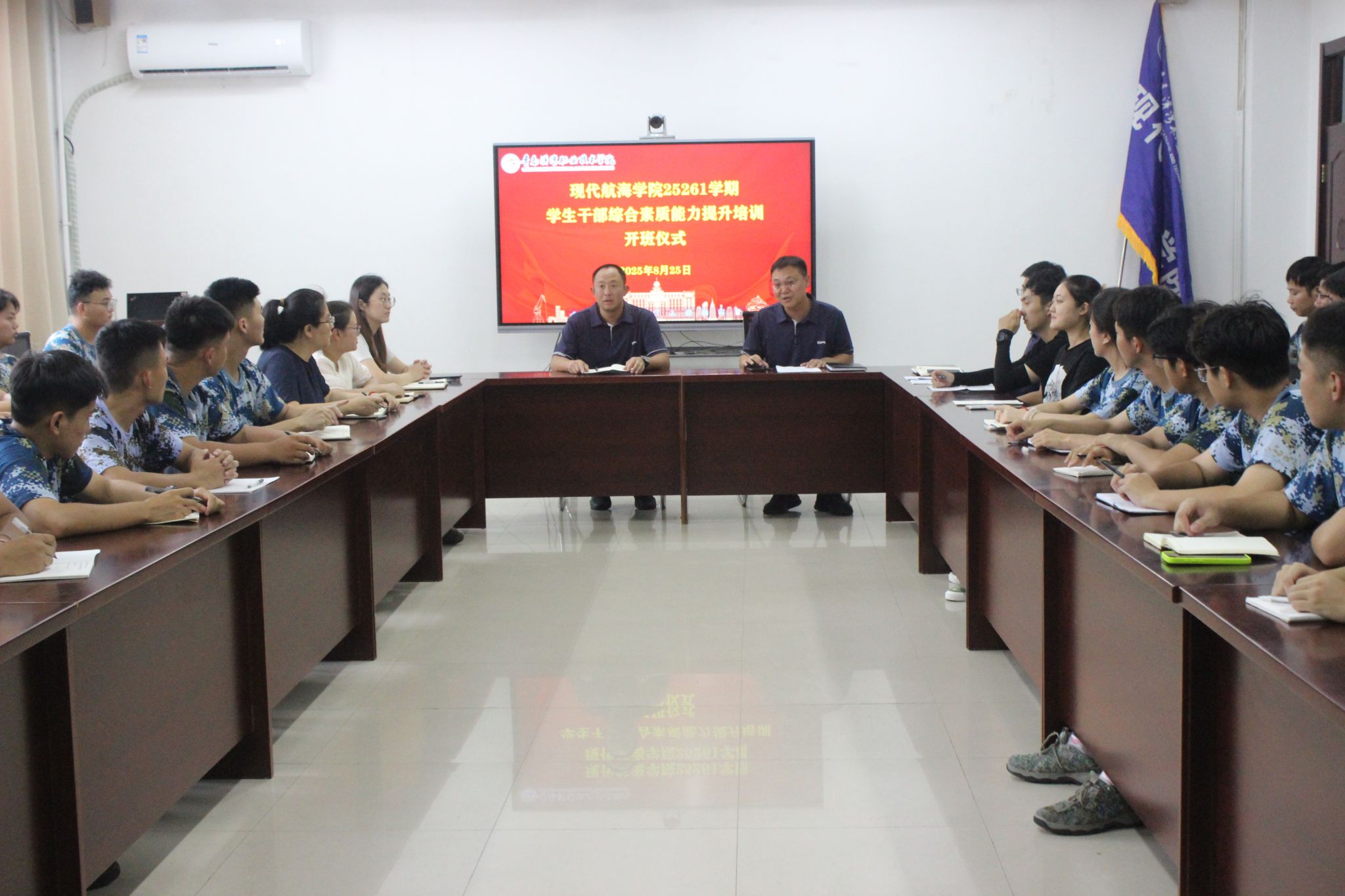 在学生代表发言环节,24级航海一班陈钰和24级轮机六班罗旭先后上台表态。陈钰结合自身经历,分享了对学生干部责任的理解,呼吁大家珍惜培训机会,在实践中锤炼自我,努力成为同学中的标杆和旗帜。罗旭代表全体学员向学院和老师致以感谢,承诺将以踏实的态度、饱满的热情投入学习训练,团结互助、不负期望,力争在培训中收获成长与进步。