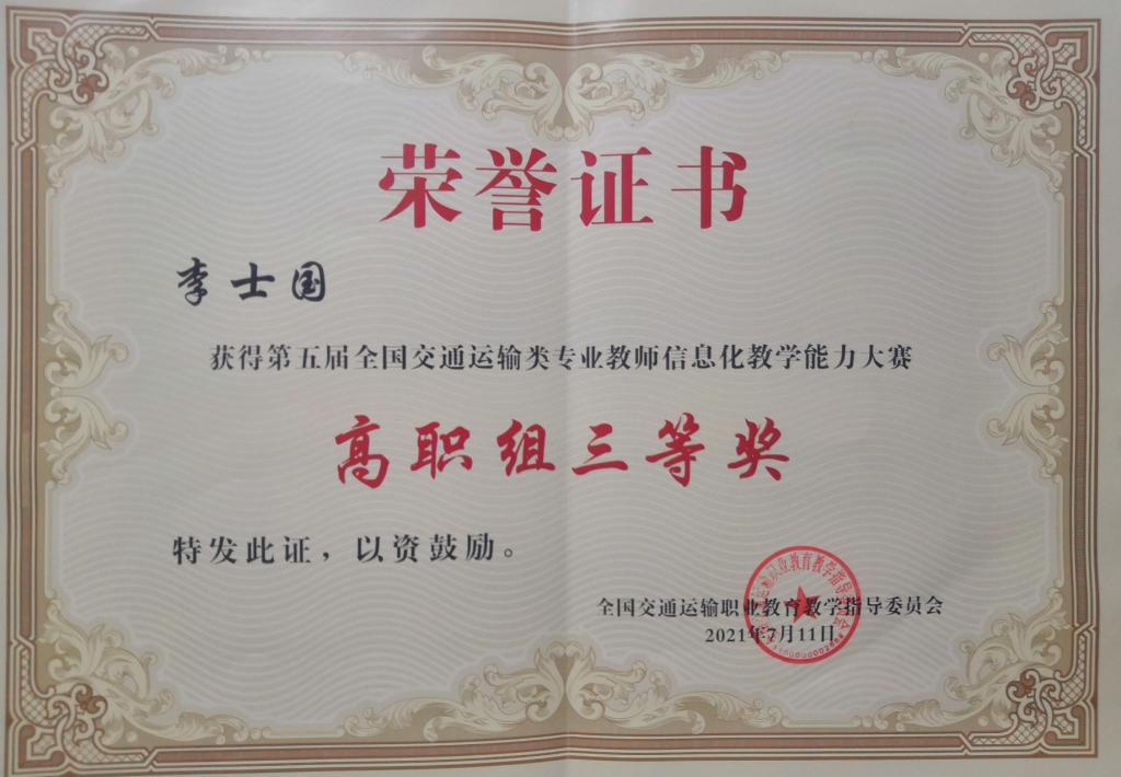 2021年7月9日,由全国交通运输职业教育教学指导委员会主办的“第五届全国交通运输类专业教师信息化教学能力大赛”在河南交通职业技术学院举行,Betway体育西汉姆联海事学院刘颖妍老师、李士国老师参加了本次决赛,分别获得高职本科组一等奖和三等奖。