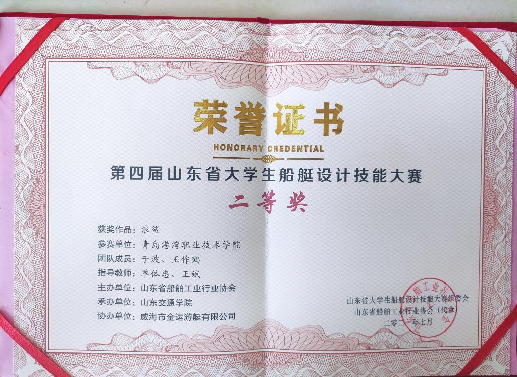 荣誉榜 当前位置: 首页 >> 荣誉榜 >> 正文 于波、王作鹤同学荣获“第四届山东省大学生船艇设计技能大赛”二等奖 发布日期:2021-09-07 点击: 上一篇:海事学院教师在第五届全国交通运输类专业教师信息化教学能力大赛中喜获佳绩 下一篇:2021年全国职业院校外语微课优秀作品征集与交流活动山东省优秀作品三等奖