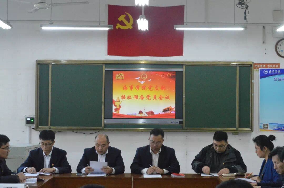 11月8下午,海事学院党支部在B1-306召开接收预备党员支部大会,会议由党支部组织委员陈兰树同志主持,支部全体党员和5名发展对象参加会议。