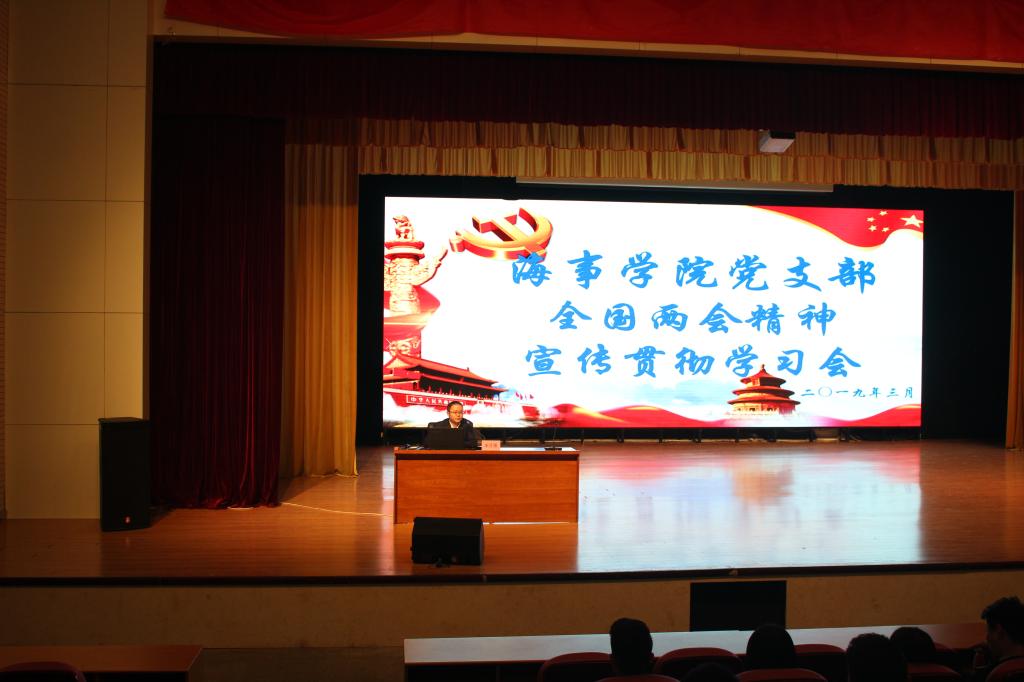 3月18日下午,海事学院在A0报告厅组织开展全国两会精神宣传贯彻学习会。海事学院入党积极分子、团员青年以及部分大一学生参加会议,学习会由海事学院团总支书记宋月强主持。