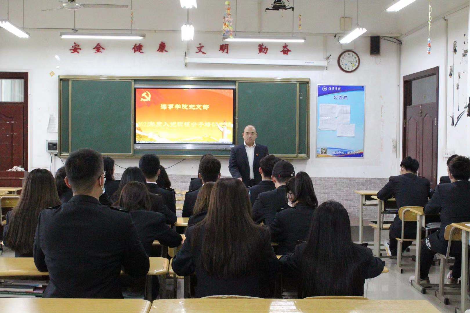 5月8日下午,海事学院党支部在B1-310举行学生入党积极分子培训党课,党支部副书记刘子高,组织委员陈兰树,全体入党积极分子参加党课。