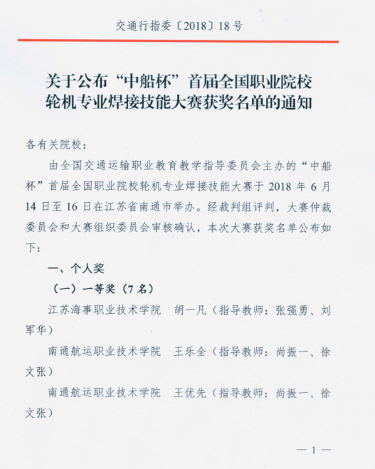 教科研成果 当前位置: 首页 >> 师资队伍 >> 教科研成果 >> 正文 黄兴旺老师带领学生荣获2018年全国职业院校轮机专业焊接技能大赛二等奖 发布日期:2018-06-20 点击: 图1 图2 图3 图4 上一篇:孙增华老师2018年被聘为航海技术专业(群)建设指导委员会委员 下一篇:孙增华老师2018年参与发明专利两项