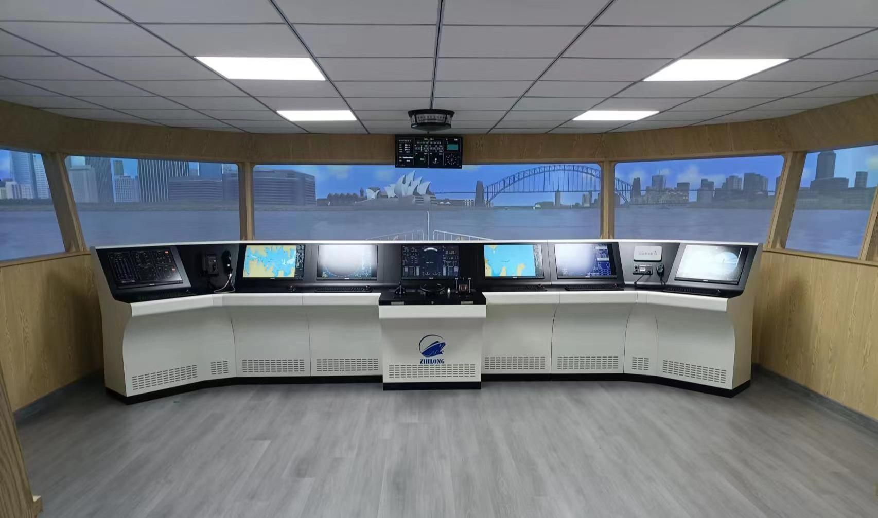 360船舶操纵拟器实训室2022年建成,占地面积400平方,该实训室由1个主本船和4个副本船组成。可全方位立体展示海上航行情景,能最大限度的仿真各操船环境,仿真呈现全球50多个主要港口及航段,以及100多种代表船型的航行状态,发挥着航海技术专业教学及远洋船舶驾驶人员培训的功能。