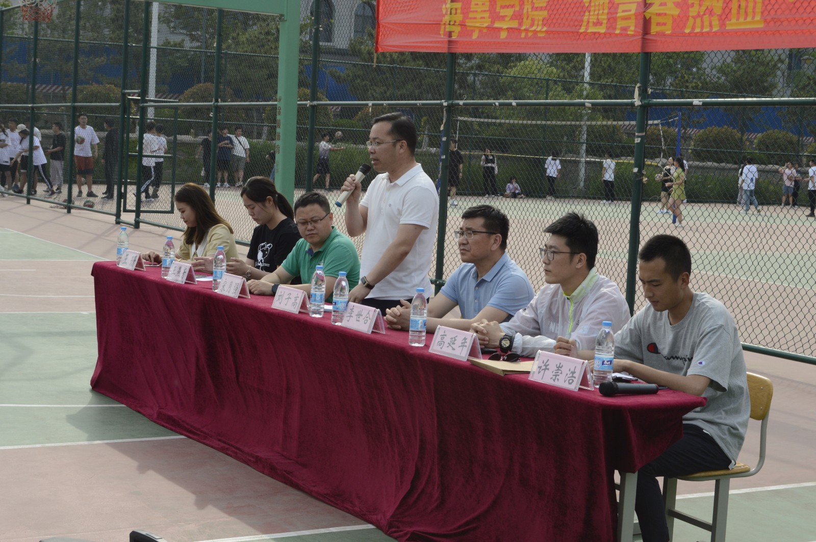6月7日,海事学院在篮球场举行“洒青春热血·绘人生华彩”第一届“青春杯”篮球比赛开幕式,海事学院党支部副书记刘子高,团总支书记宋月强,全体辅导员老师,全体运动员、裁判员参加开幕式,开幕式由辅导员许崇浩老师主持。