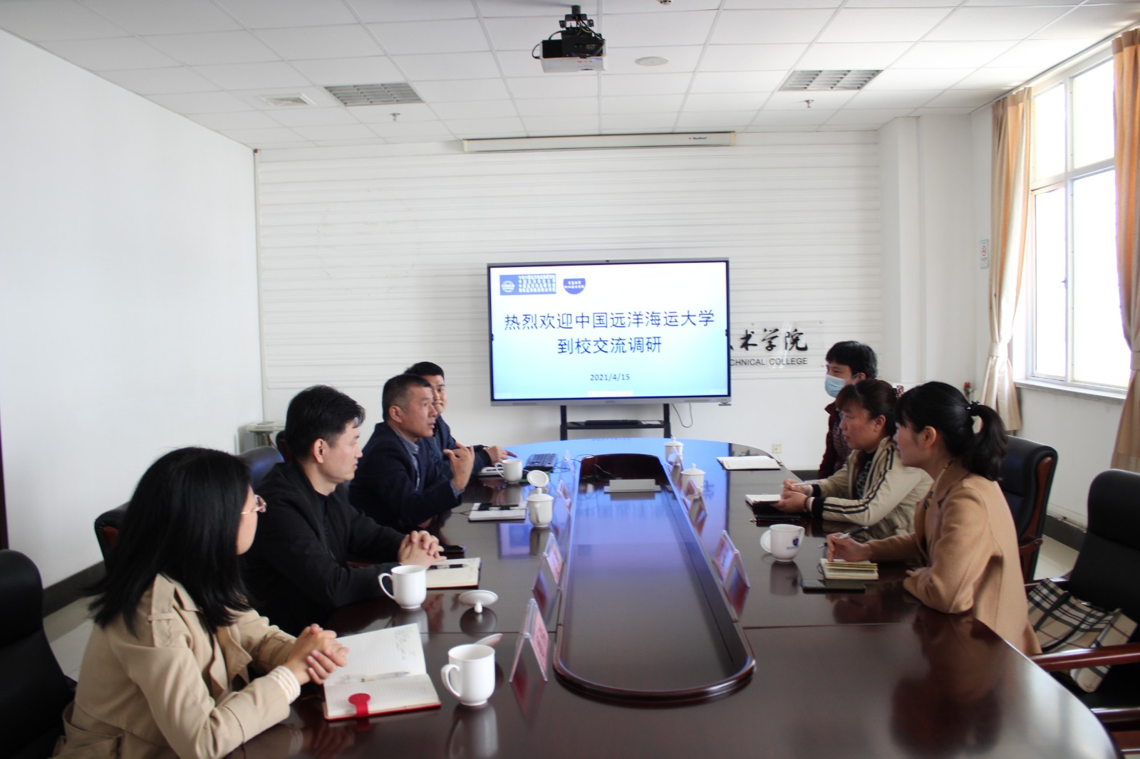 综合新闻 当前位置: 首页 >> 新闻中心 >> 综合新闻 >> 正文 中国远洋海运大学到校交流调研 发布日期:2021-04-16 点击: 4月15日,中国远洋海运大学职业教育学院港航系陈蓓主任等一行三人来我院交流调研。海事学院院长孙增华、院长助理聂涛等参与接待。 座谈中,孙增华首先介绍了海事学院的专业设置和人才培养特色,聂涛从师资队伍、实训室建设、1+X证书等方面交流了我院国际邮轮乘务管理专业的专业建设成果。此次座谈,双方教师深入交流了课程建设和专业建设心得,为下一步双方师资交流共享、教材共建打下了良好的基础。 会后,双方领导共同参观了学院的邮轮综合实训室。 上一篇:海事学院组织召开学生工作部署会 下一篇:海事学院召开2021届毕业生就业工作推进会