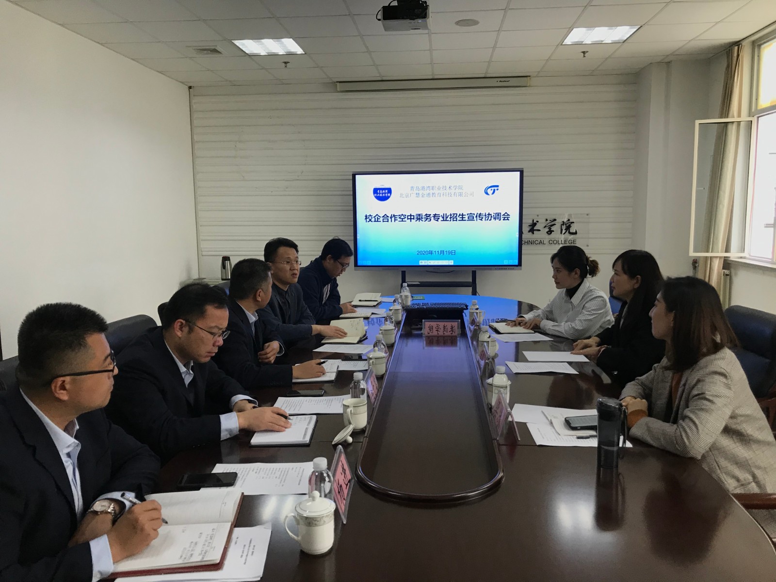 此次会议是我校和北京广慧金通教育科技有限公司签约后开启合作的标志性事件,双方校企合作办学进入实质性进展阶段,也标志着我校空中乘务专业招生工作全面开始。