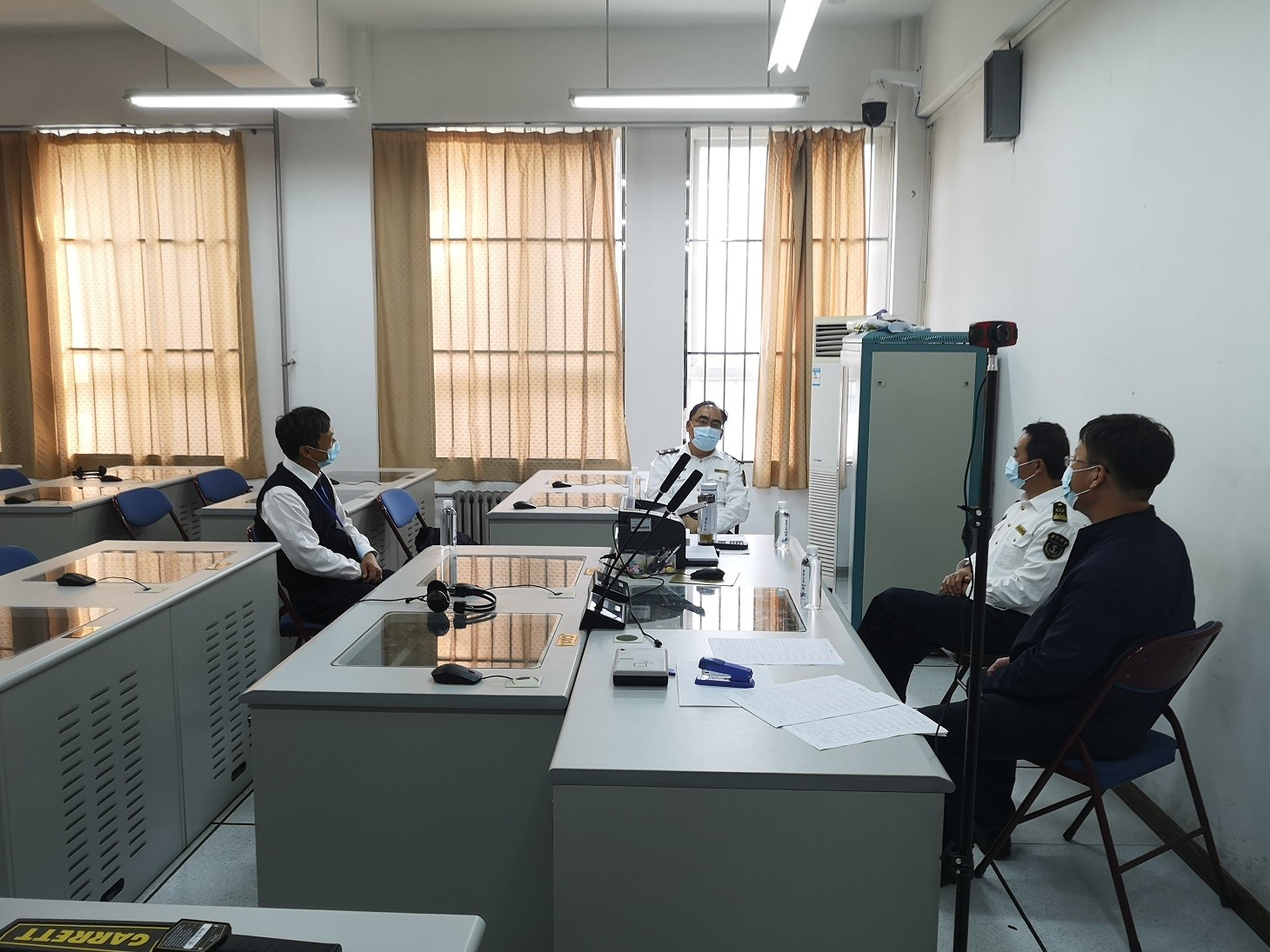 在按照学校有关防控要求进入考场后,李积军副局长一行详细了解考生健康排查、人员管控、考场环境清洁消毒、防疫用品配备、应急处置流程以及有关考场实施方案落实情况。在座谈中,李积军副局长进一步了解了院校学生返校复学就业、新生入校、社会船员复培等相关工作安排,疫情防控制度建设、防控培训演练等相关情况,征求了院校对海事服务工作的意见建议,并就提高船员培训质量、打造高素质船员队伍、服务港航经济高质量发展进行了深入交流。