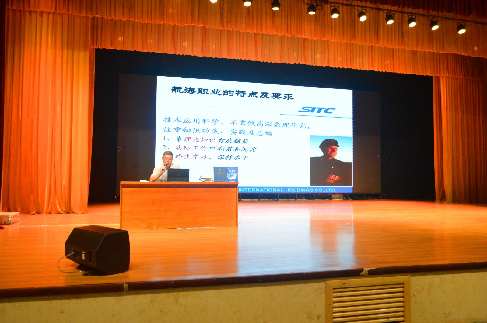 首先,由海丰船舶管理有限公司资深船长从船上生活、航海乐趣等方面向全体学生分享心得。随后,互动环节将图书赠予仪式推向高潮,同学们对航海事业充满了兴趣,并纷纷向经验丰富的船长提出自己的问题,并得到了有见地的解答,通过互动,全体学生对航海事业有了更深一步的理解。最后,刘子高、两位学生作为图书赠予代表与海丰代表完成图书赠予仪式。