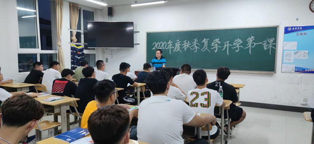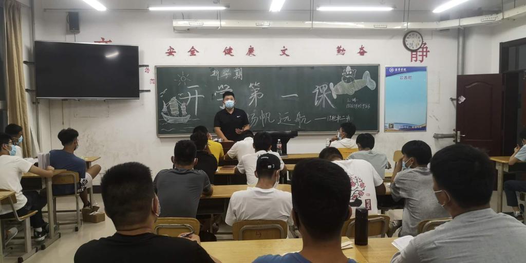 综合新闻 当前位置: 首页 >> 新闻中心 >> 综合新闻 >> 正文 海事学院组织召开“开学第一课”主题班会 发布日期:2020-09-07 点击: 9月6日,海事学院组织全体辅导员、班主任召开新学期“开学第一课”主题班会。 各班辅导员、班主任分别从校园疫情防控、爱国主义教育、理想信念教育、健康安全教育、两个秩序恢复、新学期目标等方面对学生教育引导并提出具体要求。组织了教室、餐厅、宿舍等人员聚集性场所的疫情防控应急处置演练。 通过此次班会,海事学院全体学生端正了态度,明确了疫情防控常态化的重要性,为新学期学生工作的顺便开展奠定了基础。 图1 图2 上一篇:海事学院召开2020年秋季学期学生干部培训会议 下一篇:海事学院组织疫情防控应急处置演练