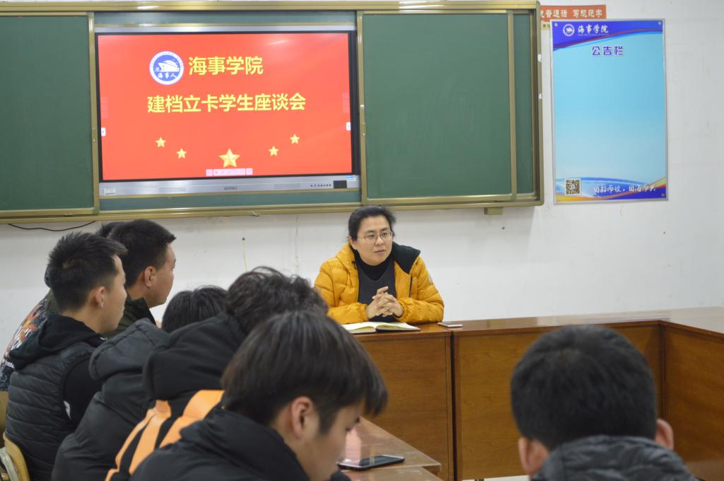 综合新闻 当前位置: 首页 >> 新闻中心 >> 综合新闻 >> 正文 海事学院举行建档立卡学生座谈会 发布日期:2019-12-26 点击: 12月25日,海事学院在B1-306举行建档立卡学生座谈会,24名建档立卡学生参加座谈,会议由辅导员刘倩老师主持。 首先,刘倩向同学们讲解了国家资助政策;其次,刘倩了解了同学们的生活、工作情况和期末复习情况;最后,刘倩号召学生要争做懂感恩、讲诚信的新时代文明大学生。 此次会议,使学生对国家建档立卡政策有了更加深入的了解,同学们懂得了感恩,为海事学院资助工作的开展提供了保障。 图1 上一篇:海事学院举办学习经验交流会 下一篇:海事学院举办2019-2020学年第一期“青马工程”大学生骨干培训结业典礼