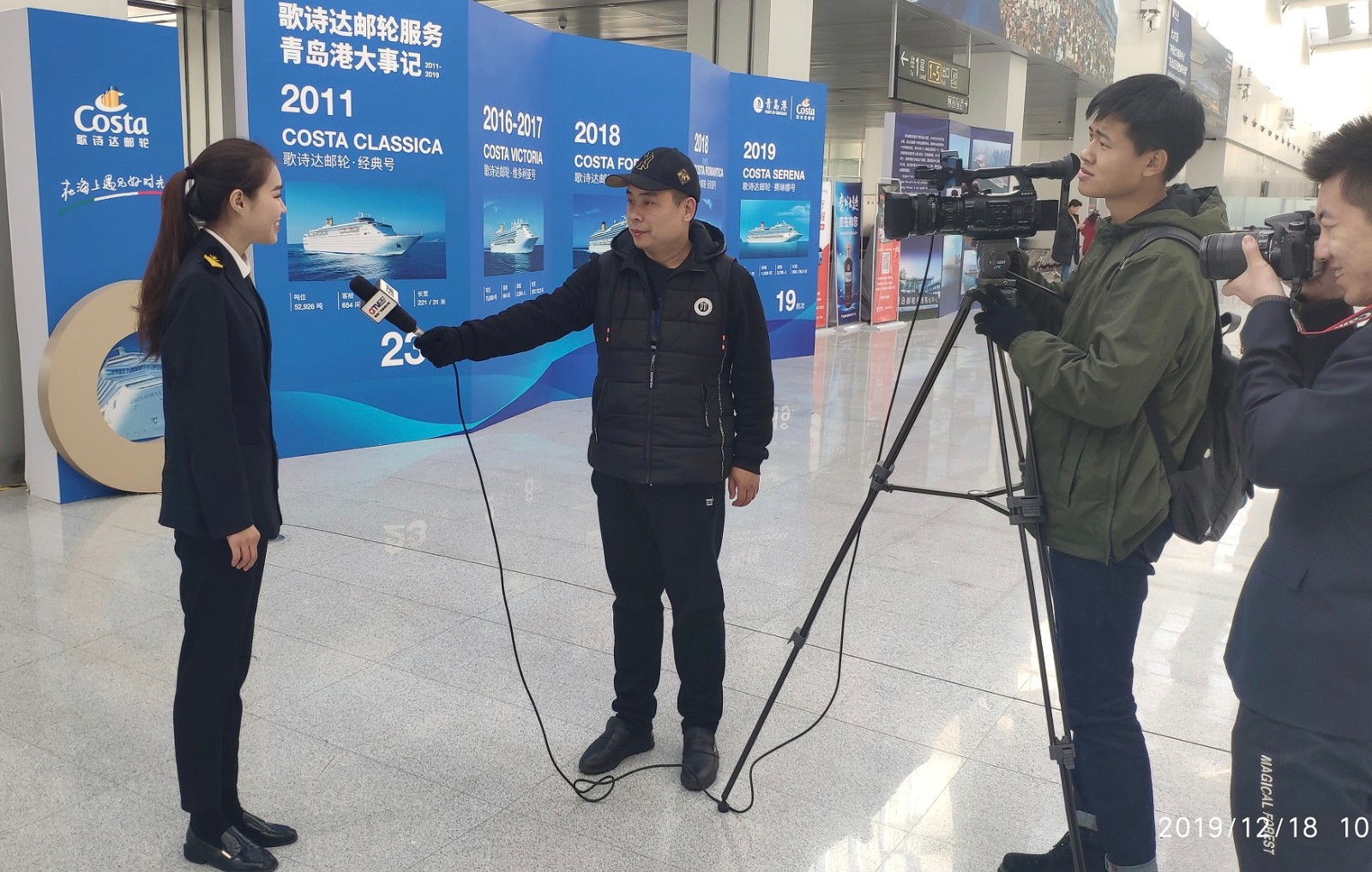 仪式上,我院邮轮乘务专业学生结合自身的志愿者服务经历代表联盟院校学生发言,并接受采访。此前,青岛国际邮轮公司与学院成立“产教融合实训基地”,今年3-12月份,共有200多名邮轮乘务专业学生在歌诗达“赛琳娜”号邮轮作业期间到邮轮公司从事志愿者,邮轮公司派专业老师现场教学指导,学生收获很大。