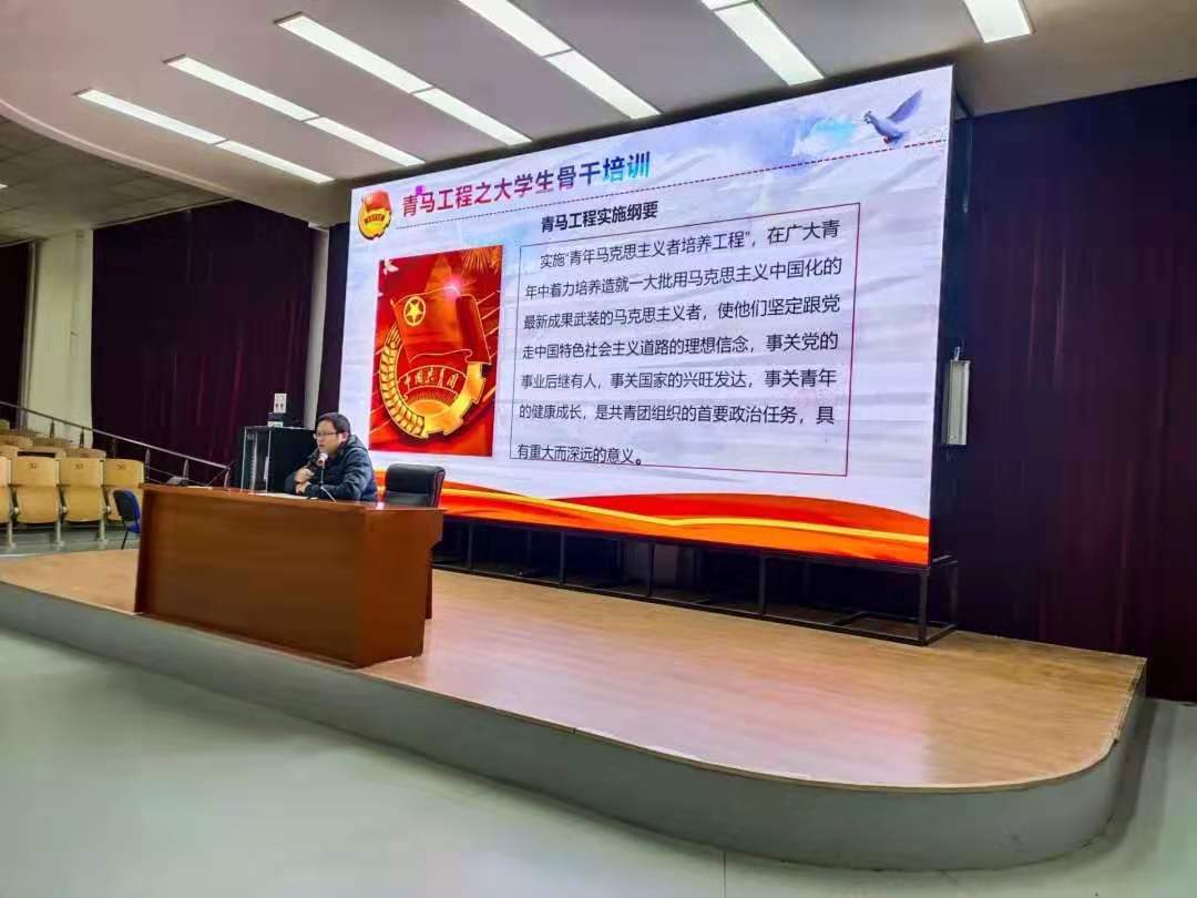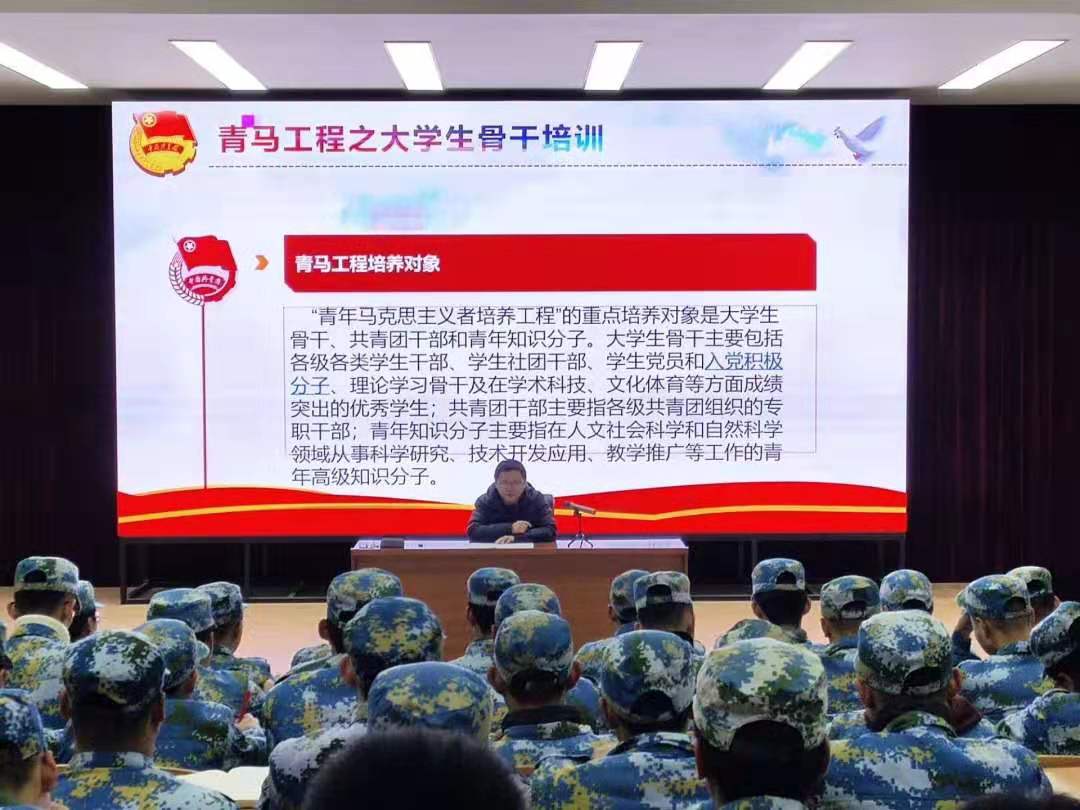 首先,宋月强向骨干们阐述了青马工程的含义。其次,从增强政治、集体、服务意识,培养无私奉献、埋头苦干、开拓创新精神,提高表达、沟通、组织协调能力,处理干部和同学、干部和老师、学习和工作的关系四个方面对大学生骨干提出具体要求。最后,宋月强带领全体大学生骨干重温入团志愿词,并希望全体骨干始终以马克思主义思想武装自己,争做有理想、有目标的新时代大学生。