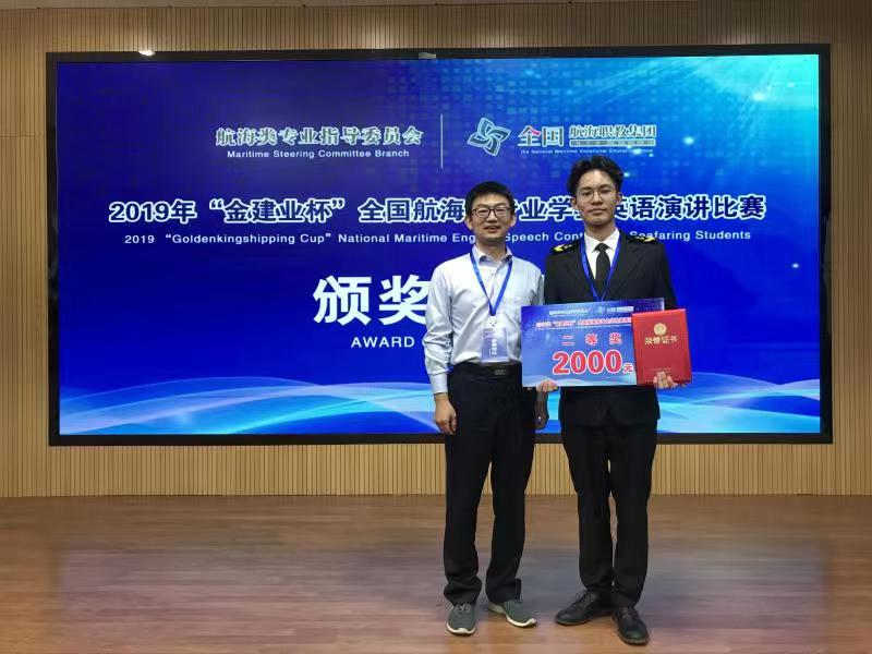 综合新闻 当前位置: 首页 >> 新闻中心 >> 综合新闻 >> 正文 海事学院学生获得全国首届航海类学生英语比赛二等奖 发布日期:2019-10-28 点击: 10月26日,在全国首届航海类学生英语演讲比赛中,海事学院邮轮乘务专业肖睿弘同学荣获二等奖,指导老师王凤林荣获“优秀指导教师”称号。 本次大赛由全国交通运输职业教育教学指导委员会主办,江苏航运职业技术学院承办,来自全国各地高职院校共45名航海类专业的学生参加了本次大赛。 同时,海事学院海事英语教研室主任周昕老师受邀,与大连海事大学,集美大学,江苏海事职业学院,江苏航运职业学院等相关院校的老师共同担任大赛评委。 上一篇:山东省船员培训中心来我校交流 下一篇:海事学院召开全体教工大会