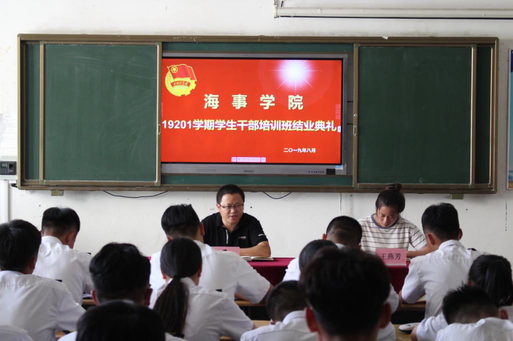 8月23日下午,海事学院在B1-307召开19201学期学生干部培训班结业典礼,海事学院辅导员王燕芳老师、全体学生干部参加会议,会议由海事学院团总支书记宋月强主持。