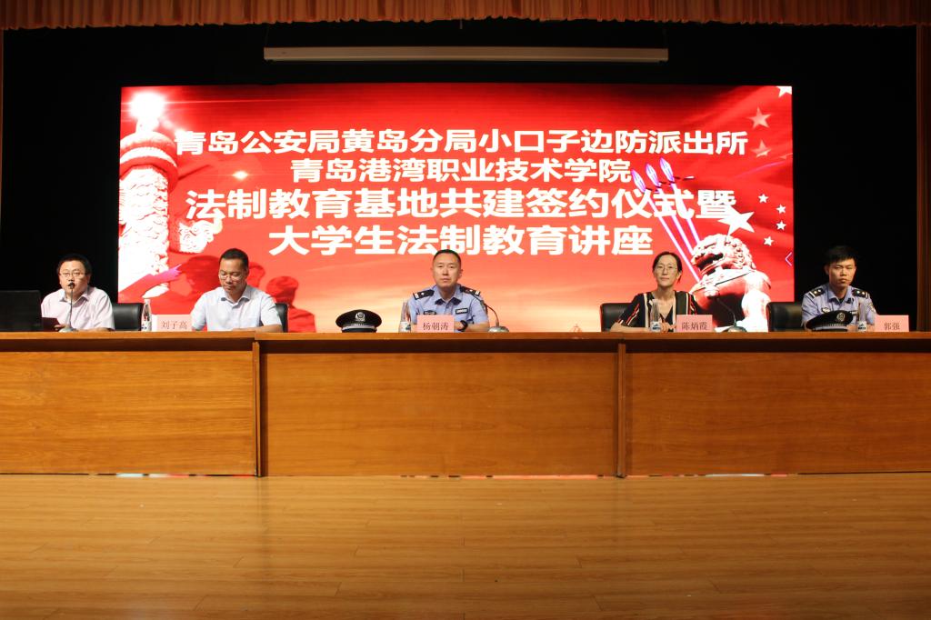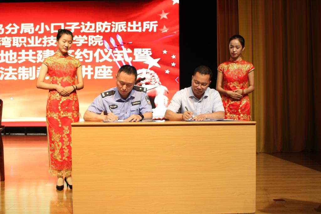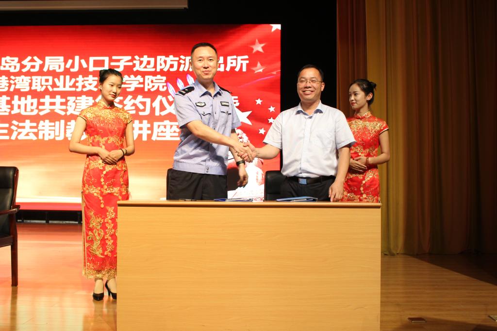 会上,小口子边防派出所教导员杨朝涛同海事学院党支部书记刘子高签署共建协议并为学校法制教育基地揭牌,杨朝涛教导员和陈炳霞书记分别致辞。学生代表宋世鑫宣读争做学法、知法、守法大学生倡议书。