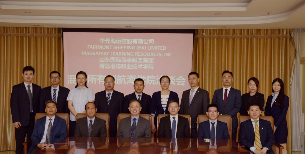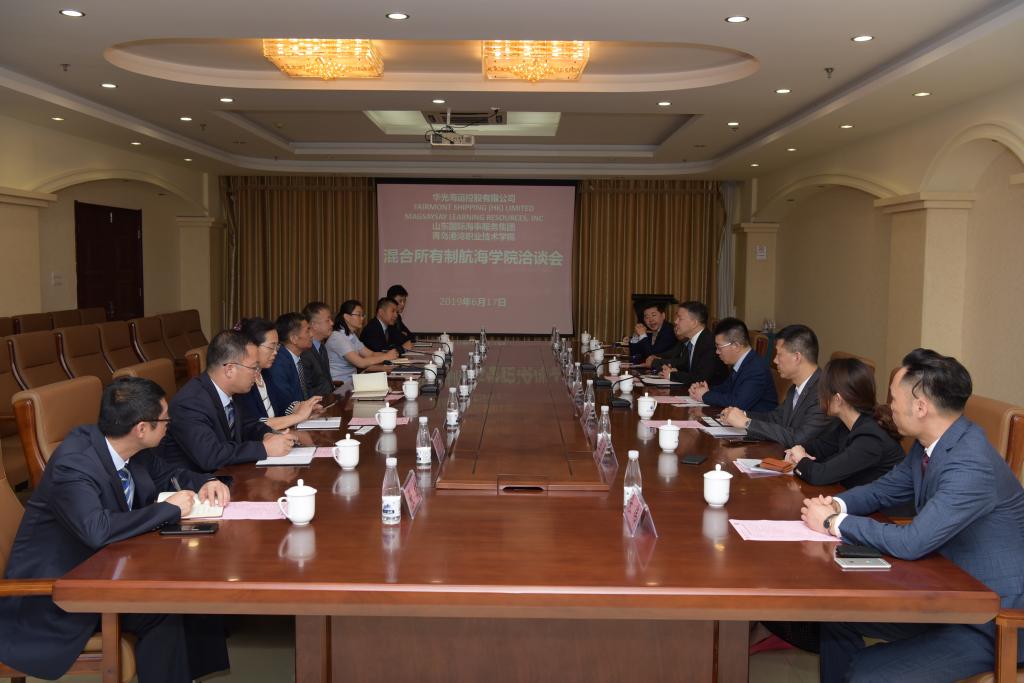 6月17日下午,校长刘民,纪委书记、工会主席孙洪勤会见了到访的香港华光海运控股有限公司首席执行官周建峰、FAIRMONT SHIPPING (HK) LIMITED 船长宋修义、Magsaysay LEARNING RESOURCES, INC PRESIDENT(主席)Alexander E.Quero、山东国际海事服务集团董事长姜明旸等企业领导,洽谈建设混合所有制海事学院事宜。