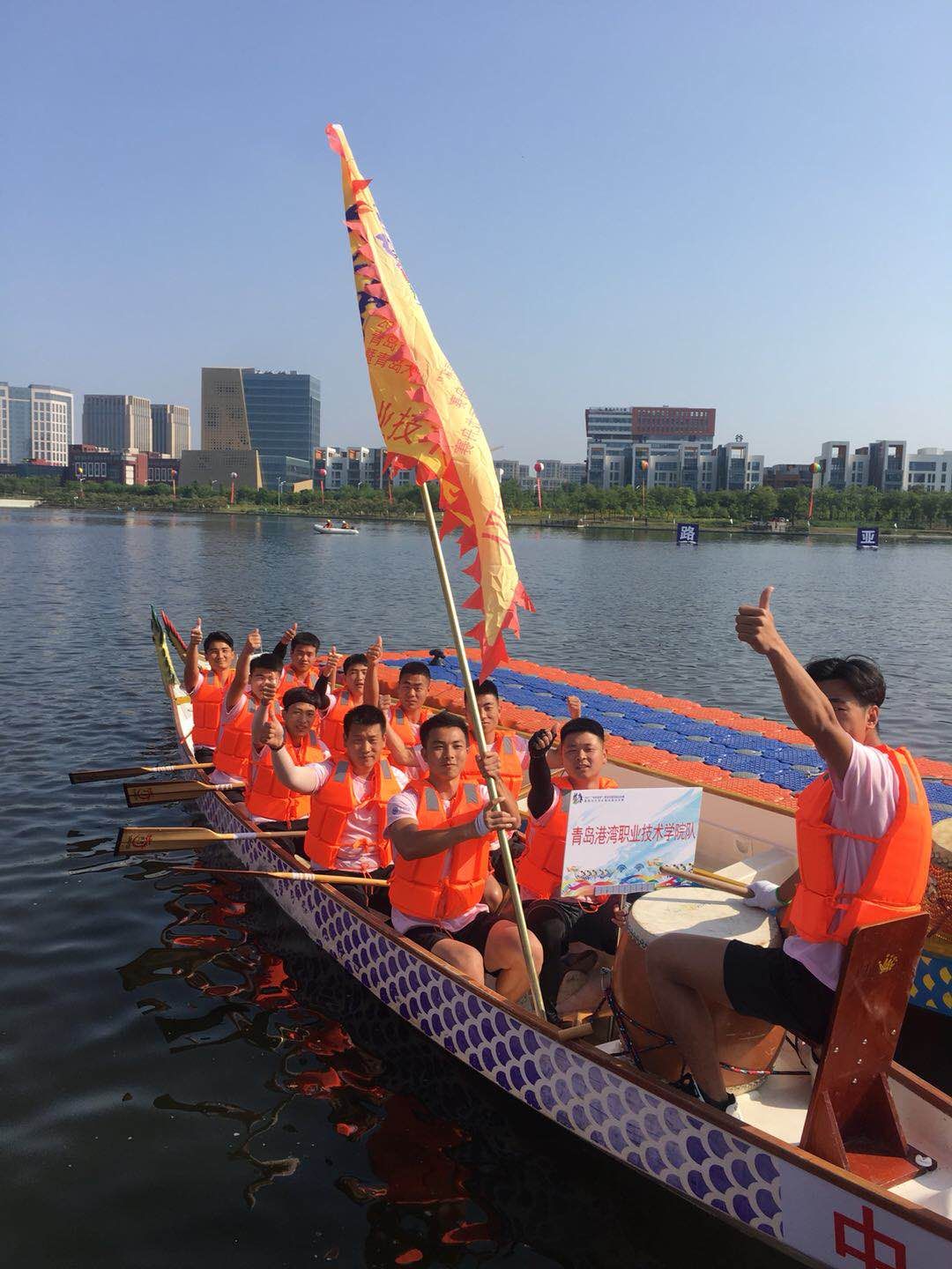 2019“中科信杯”青岛市第四届龙舟赛暨青岛大学生第四届龙舟赛6月7日在青岛高新区隆重举行。来自青岛市机关企事业单位、社会团体、高校的20支代表队400多位队员,在现场观众的呐喊助威中展开激烈角逐,迎接端午节的到来。由15名海事学子组成的我校代表队首次参赛获得了第三名的好成绩,我校获得了本次大赛最佳组织奖,海事学院彭德洲老师和周厚喜老师被大赛组委会评选为“优秀教练员”。