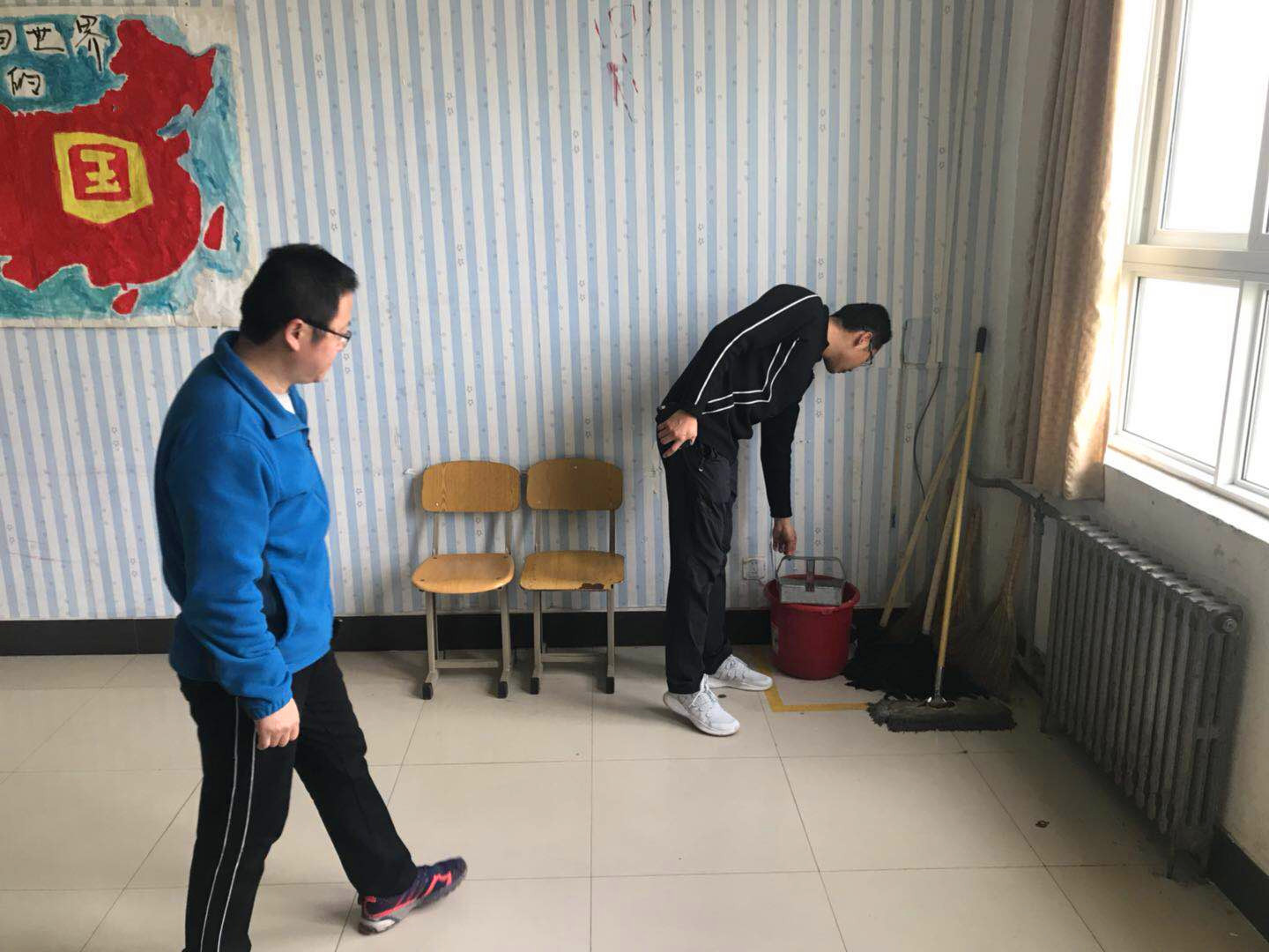 首先,全体辅导员以及部分班主任老师观看17级广播体操训练情况以及运动会团体操表演情况,刘子高书记对于在早操管理和出勤方面出现的不好现象进行了批评与指正,并对下阶段早操工作提出了希望和要求。随后,刘子高书记带队检查生活区卫生情况,现场解决卫生区打扫难点问题。最后,刘子高书记带领全体辅导员以及部分班主任老师对教室卫生进行检查,同时,刘书记对教室功能区打造和文化氛围营造方面提出了具体要求。