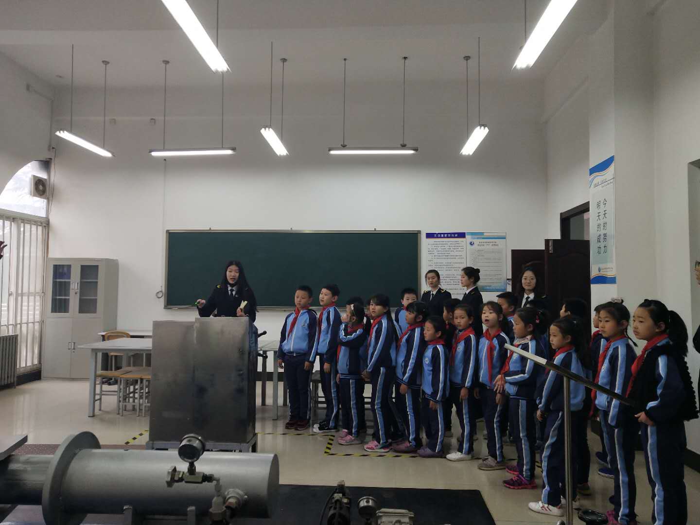 4月13日上午,海事学院航海科普教育基地迎来青岛市西海新区海之韵小学师生及家长一行四十余人参观。