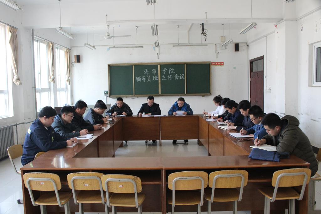 综合新闻 当前位置: 首页 >> 新闻中心 >> 综合新闻 >> 正文 海事学院召开辅导员、班主任会议 发布日期:2019-03-20 点击: 3月19日下午,海事学院在B1-316召开辅导员、班主任会议,海事学院团总支书记宋月强、全体辅导员、班主任老师参加会议,会议由海事学院党支部书记刘子高主持。 会议首先,宋月强书记就第三周学生情况作简要汇报,重点强调晚自习秩序有待于加强管理。然后,刘子高书记从安全教育、学风建设、学生活动三个方面做具体要求和部署。最后,刘书记对大三就业情况做专题动员,摸清2019届毕业生毕业去向,班主任要做到心中有数。 此次会议的召开使全体辅导员、班主任老师明确了目标,对下一阶段工作重点有了更进一步的把握。 图1 上一篇:海事学院党支部组织全国两会精神宣传贯彻学习会 下一篇:海事学院与烟台海员职专商讨水上类专业三二连读衔接工作