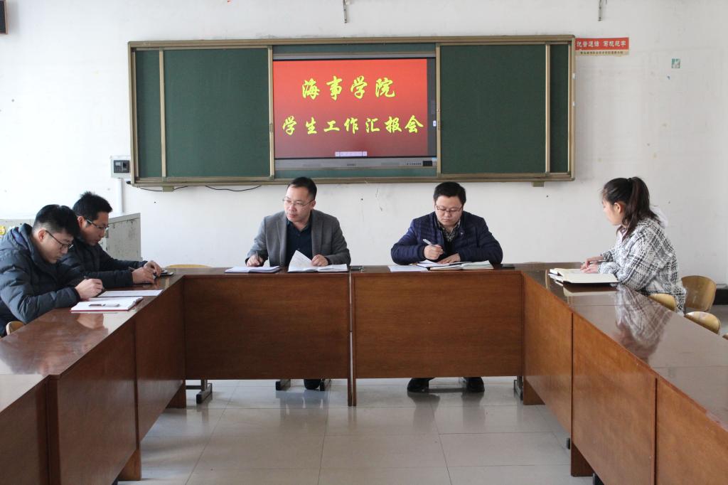 3月14日上午,海事学院在B1-306召开学生工作汇报会,全体辅导员老师参加会议,会议由海事学院党支部书记刘子高主持。