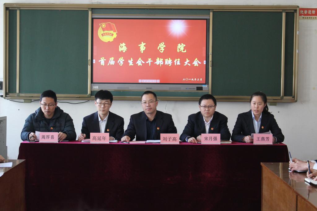 3月8日下午,海事学院召开首届学生会干部聘任大会,海事学院党支部书记刘子高、团总支书记宋月强、全体辅导员老师和副部长及以上学生干部参加,会议由王燕芳老师主持。