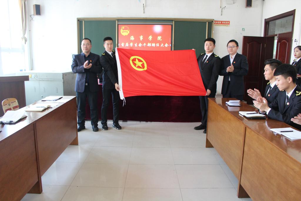 会议首先,由团总支书记宋月强老师宣读聘任文件,强调学生干部要以身作则、自我约束、加强组织能力,为同学树立一个良好的榜样。学生干部代表发言,承诺要严于律己、认清自己的位置,做到让同学们信服。会中,党支部书记刘子高老师、团总支书记宋月强老师为学生干部代表庄严授旗,并为学生干部颁发聘任证书。最后,在海事学院迎来新起点、新征程、新机遇、新挑战之际,刘书记从会学习、敢担当、抓落实三个方面对学生干部提出具体要求。