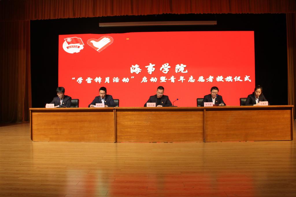 春光明媚,微风拂煦,3月5日下午,为了纪念雷锋同志,弘扬雷锋精神,提高大学生道德素养,倡导“奉献、友爱、互助、进步”的志愿精神,深入贯彻社会主义核心价值观,海事学院举办“学雷锋海事学子勇担当、促融合逐梦深蓝敢作为”主题雷锋月活动暨青年志愿者授旗仪式。海事学院党支部书记刘子高、团总支书记宋月强、全体辅导员、大一全体学生及部分学生干部参加,会议由辅导员高延年老师主持。