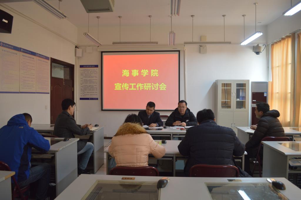 2019年3月1日上午,海事学院在B2-206召开宣传工作研讨会,院长孙增华、支部书记刘子高、院长助理聂涛及相关岗位负责老师参加会议,会议由刘子高书记主持。