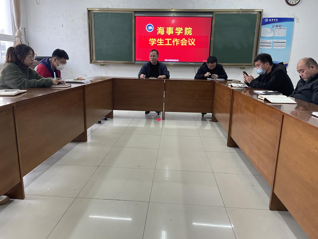 11月11日,海事学院在B1-403组织召开学生工作会议,海事学院团总支书记宋月强,全体辅导员、班主任老师参加会议,会议由海事学院党总支副书记刘子高主持。