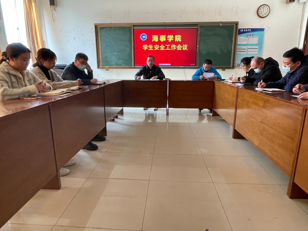 11月26日,海事学院在B1-403组织召开学生安全工作会议,海事学院全体辅导员、班主任参加会议,会议由海事学院党总支副书记刘子高主持。
