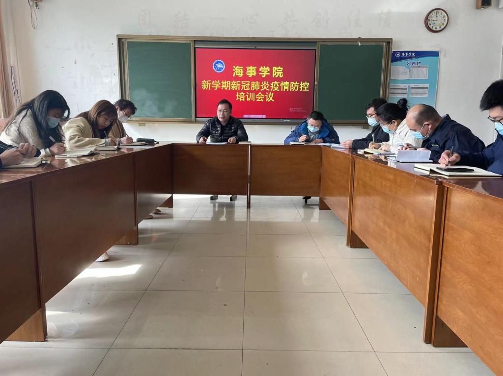 3月1日,海事学院在B1-403组织召开新学期新冠肺炎疫情防控培训会议,海事学院党总支副书记刘子高,全体辅导员、班主任参加会议,会议由海事学院团总支书记宋月强主持。