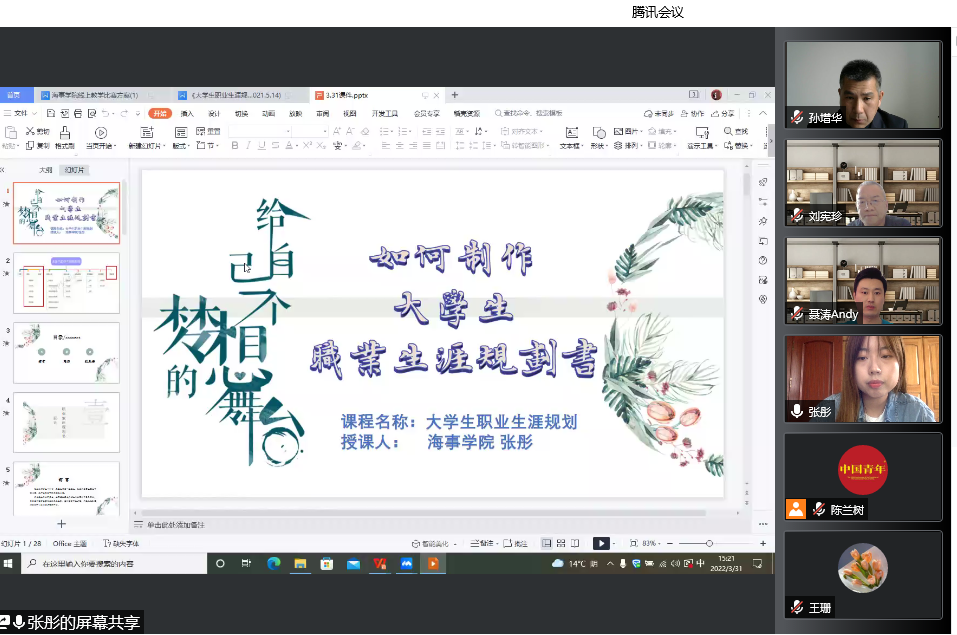 3月31日,海事学院通过腾讯会议举行了2022年青年教师线上教学比赛。6位青年教师参赛,全院教师线上观摩比赛。