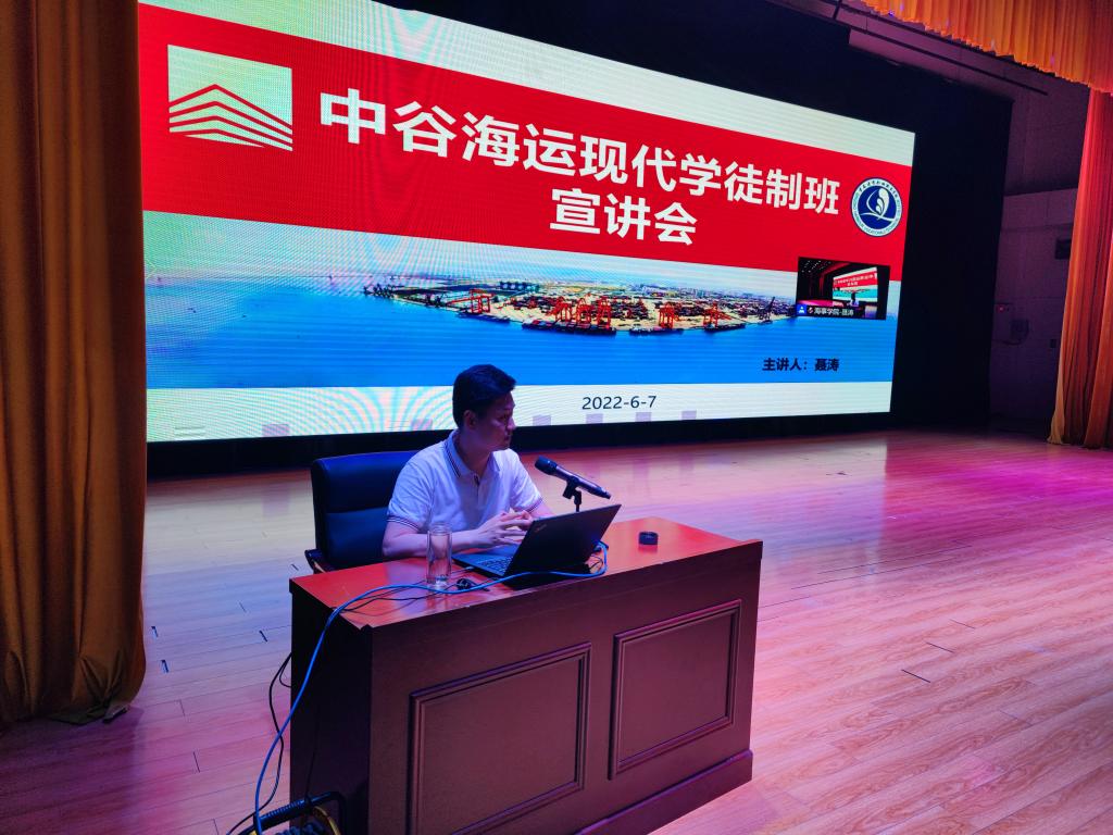 6月8日,海事学院在A0报告厅举行中谷海运现代学徒制班启动宣讲会,会议采用“线上+线下”形式举行,21级航海技术、轮机工程技术、船舶电子电气技术3个专业全体学生参加。海事学院院长孙增华、21级航海类专业全体辅导员班主任和相关老师参加宣讲会。海事学院院长助理聂涛做宣讲报告。
