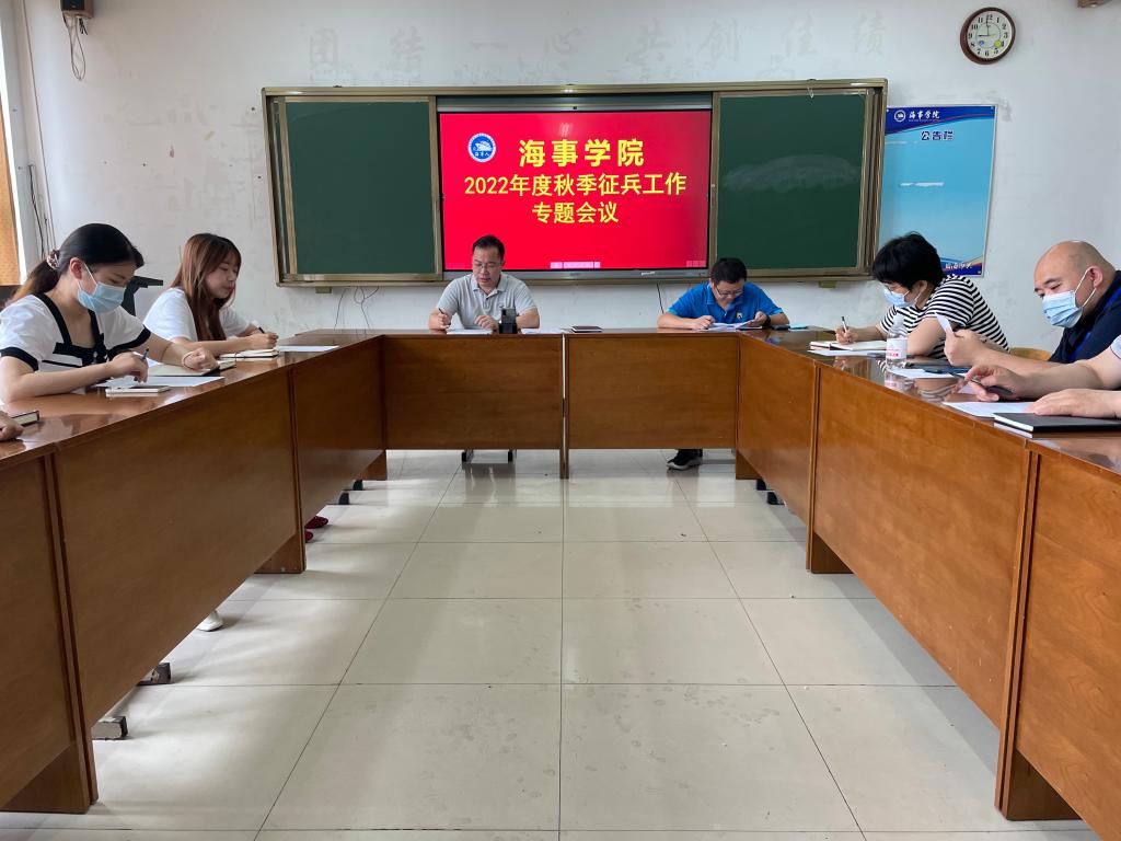 6月17日,海事学院在B1-403组织召开2022年度秋季征兵工作专题会,海事学院全体辅导员、班主任老师参加会议,会议由海事学院党总支副书记刘子高主持。