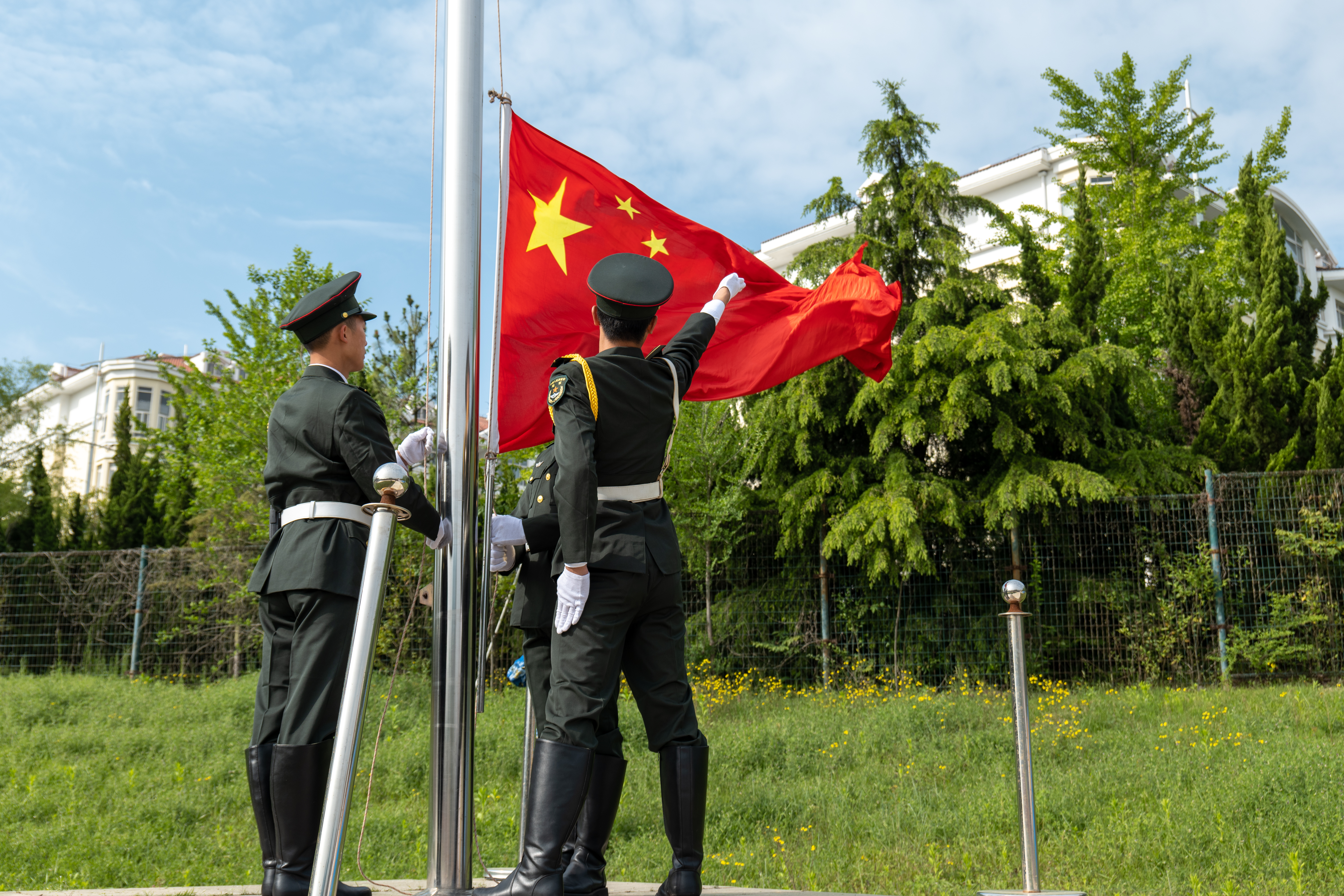 伴随着“升旗仪式正式开始”的号令,校国旗护卫队迈着整齐划一的步伐,脚步铿锵有力敲碎了晨曦的寂静,全体师生心中激情澎湃。随着庄严的国歌奏起,五星红旗冉冉升起,迎风飘扬,全体人员垂手肃立、奏唱国歌、向国旗行注目礼。礼毕后,高延年寄语同学们要把握大好机遇,珍惜美好时光,树立崇高理想,胸怀家国情怀,不负韶华,不负时代。