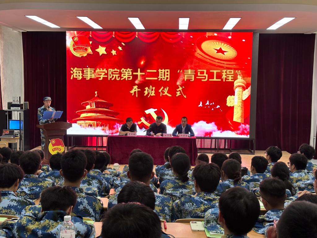 会上,许崇浩宣读了《海事学院第五期青马工程大学生骨干培训实施方案》;教官助理代表鞠伟豪和学员代表姜锐先后做表态发言,表示要珍惜机会,努力学习,积极思考,学以致用,为实现中华民族伟大复兴做好素质和能力储备,立志成为能担重任的栋梁之材;最后刘子高围绕提高认识,坚定信念,做青马精神的传承者;端正态度,精心组织,做青马精神的弘扬者;知行合一,务求实效,做青马精神的践行者三个方面为新学员讲授第一课,勉励在新学员以梦为马,不负韶华,成为优秀的青年马克思主义者。