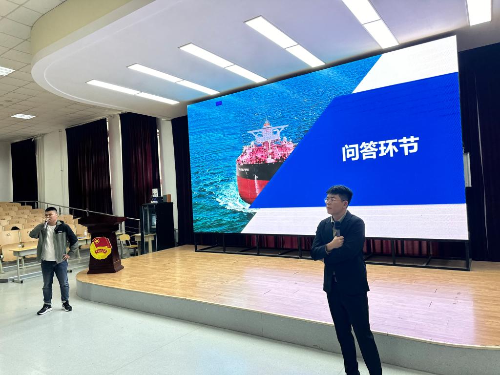 本次学长航海分享会邀请到学院2018届毕业生程策二管轮和2019届毕业生张振二副,两位学长结合亲身经历,从在船工作、娱乐生活、工资待遇、航行安全、职业规划等几方面进行分享,并与同学进行互动交流。同学们纷纷表示,通过分享交流,对海员职业更加了解,对自身未来职业规划更加明确。
