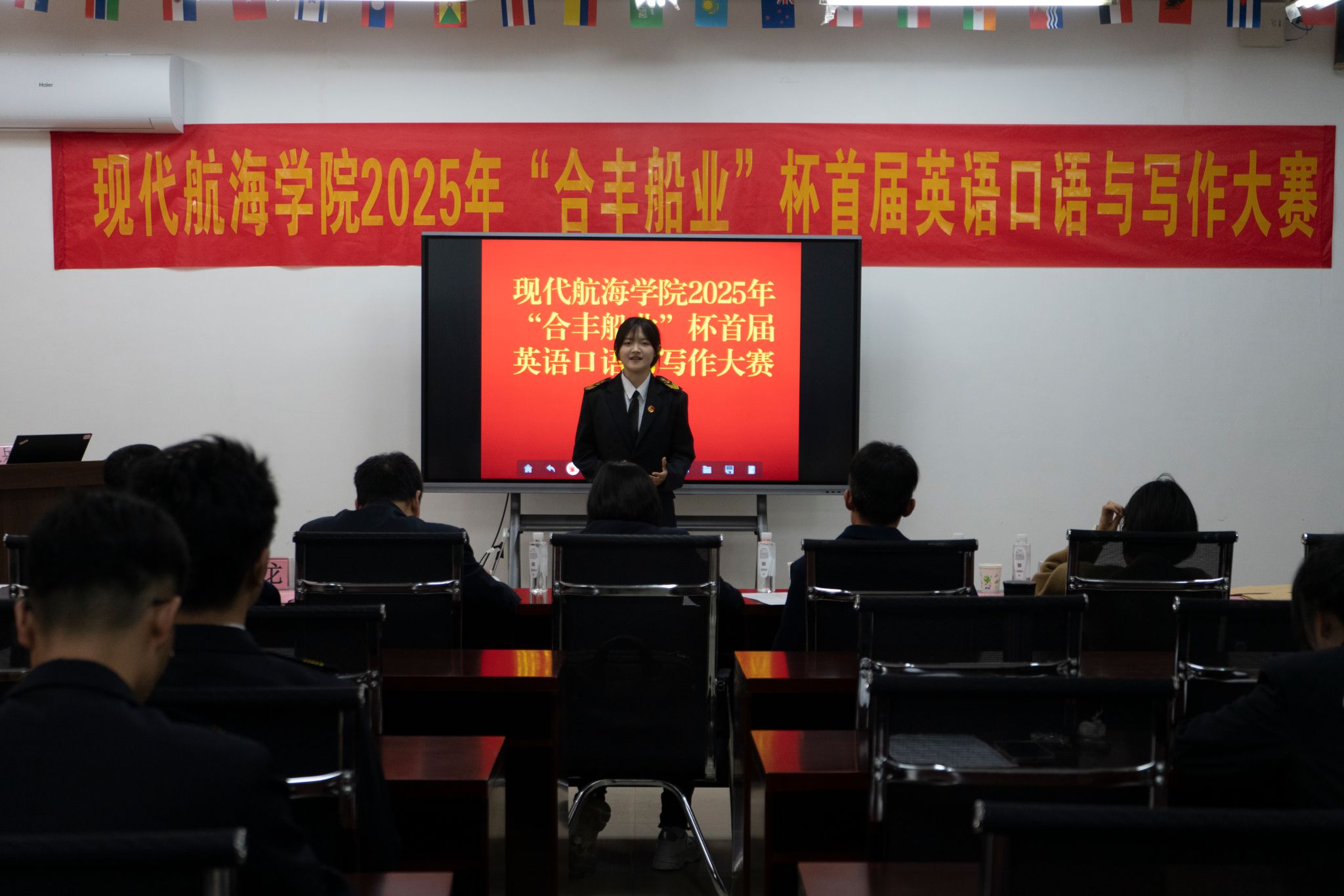 3月25日,由合丰船业集团特别支持的bw必威西汉姆联英语口语和写作大赛在学院成功举办。本次赛事创新设置"学术写作竞航"与"特定演说挑战"双赛道,32名航海学子同台竞技,在学院领导与企业专家的见证下,书写了一段充满智慧碰撞的蓝色篇章。
