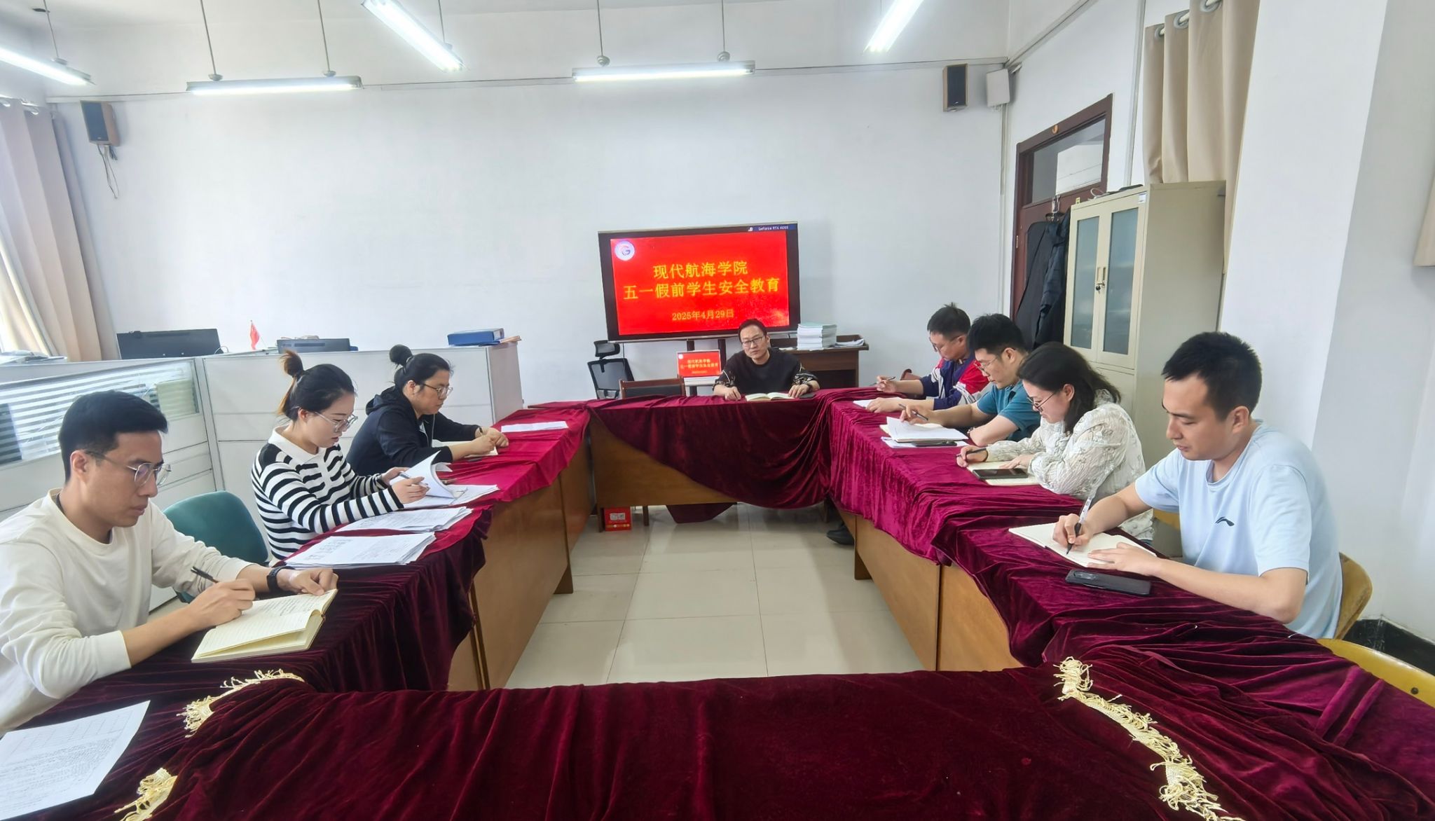会上,纪栋尚强调全体专兼职辅导员在放假之前要深入学生宿舍,进行全面细致的安全检查与教育。重点强调了防火、防盗、防电等安全要点,督促学生离开宿舍时务必切断所有电源,锁好门窗,杜绝使用违规电器,从源头上消除安全隐患,共同营造安全、整洁的宿舍环境。在一日生活制度方面,要求学生假期中保持良好的生活作息习惯,合理安排休息和娱乐时间,做到劳逸结合。外出时严格遵守交通规则,注意交通安全,不搭乘存在安全隐患的交通工具,时刻留意人身和财物安全。