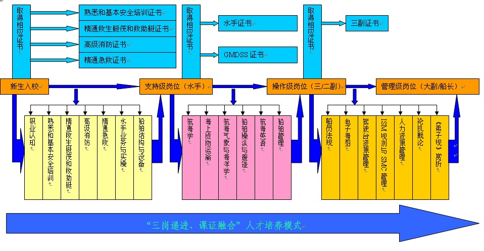 按照高级船员成长规律组织教学,实现系统培养;按照企业实际需求,加大职业能力培养力度,实现学历教育与资格证书培训对接;体现与中职、本科的衔接,充分考虑到船员职务晋升和终身学习的需求。