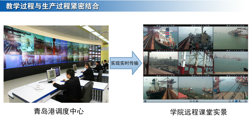 航海技术专业建成青岛港生产现场远程互动数字传输课堂,使教学过程紧密结合企业生产过程,数字传输破解时空障碍,生产现场搬进教学课堂。