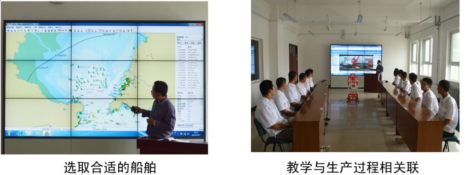 聘请引航员为兼职教师,负责生产现场讲解,专业教师在课堂指导学生学习。实现专业教学与岗位技能的有效衔接。