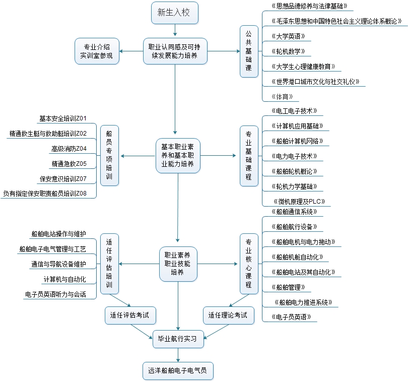 为培养适应国际需求的技术技能型船舶电子电气员,课程设置如下图
