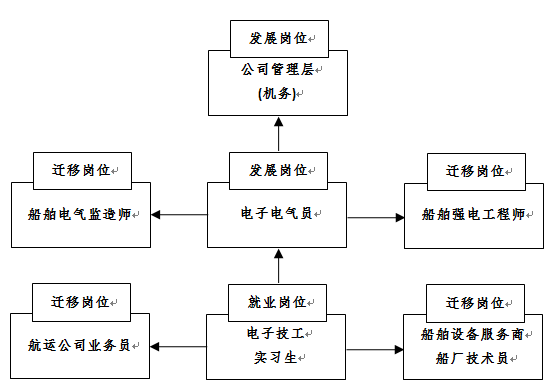 船舶电子电气技术专业毕业生依据公司需求,职业生涯设置岗位如下: